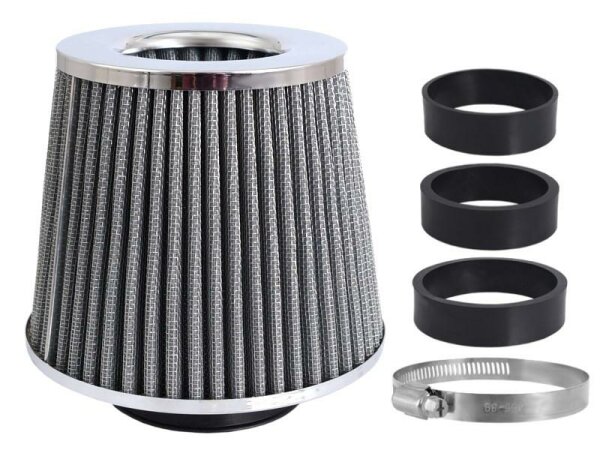 Konischer Luftfilter 155x130x120mm, silber/chrom, Adapter: 60, 63, 70 mm