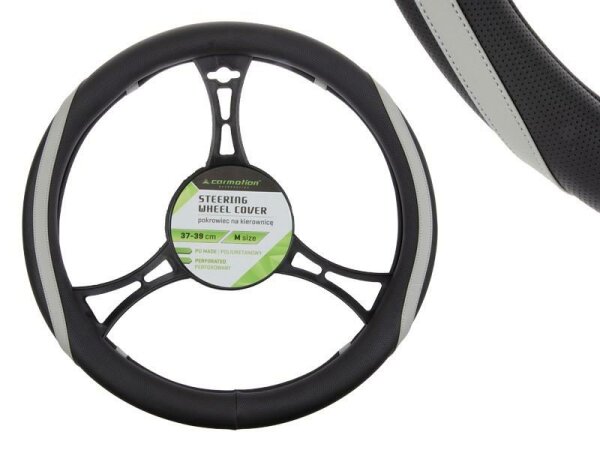 Lenkradbezug PU 37-39 cm "M", perforiert, schwarz + graue Elemente